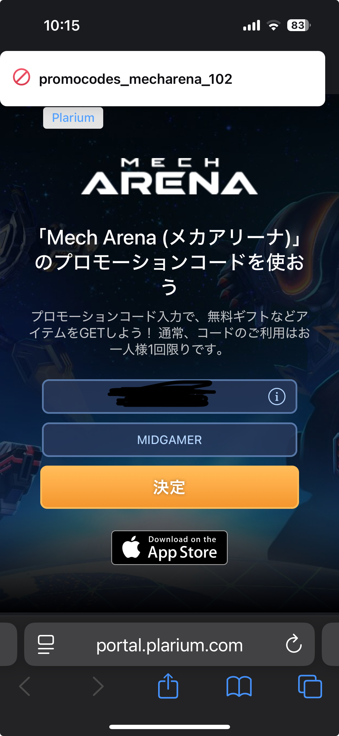 これは既に受け取り済みのプロモーションコードを入力してしまった際に帰ってくるエラーコードなのだ 現状2度貰えるコードは無い(と思う)ので、もし |