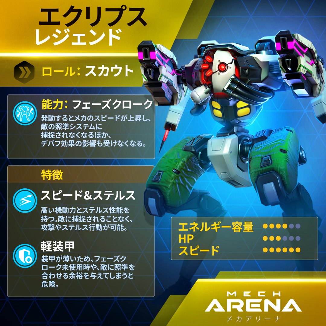 | スピード&ステルス | 高い機動力とステルス性能を持つ。敵に捕捉されることなく、攻撃やステルス行動が可能。 |